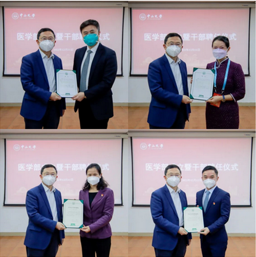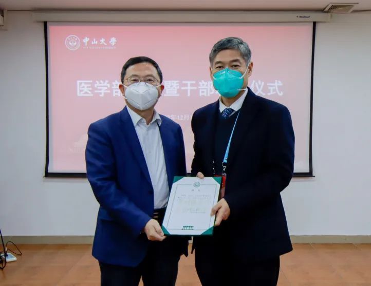 中國科學院院士、中山大學校長高松為到場的醫學部主任、副主任,醫學部內設處室領導人員頒授聘書和干部任命書。