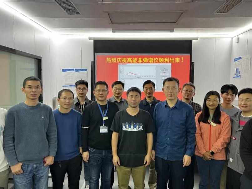 中大譜儀是國內首臺非彈性中子散射飛行時間譜儀,其設計入射能量范圍為10 - 1500 meV,填補了我國中高能非彈性中子散射的空白,是我國在凝聚態物質和功能材料的動力學性質研究領域的重要平臺。譜儀自2019年9月開始建設,由中山大學譜儀建設團隊和散裂中子源譜儀建設團隊及專業技術組通力協作,攻克了大質量、高轉速T0斬波器,高透射率、低泄漏率的費米斬波器,大體積、高真空散射腔,大面積、高位置分辨率的二維位置靈敏中子探測器等關鍵技術,克服了疫情反復等困難,確保了譜儀設計、研制、安裝與調試工作順利進行。