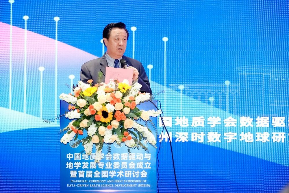 隨后,中國地質調查局黨組成員、副局長徐學義研究員,國家自然科學基金委員會副主任侯增謙院士(線上),中國礦物巖石地球化學學會名譽理事長胡瑞忠院士,國際地質科學聯合會主席 John Ludden 院士(線上),澳大利亞地球科學理事會主席 David Cohen 院士(線上),第 37 屆國際地質大會主席、韓國地質學會主席Daekyo Cheong 教授(視頻)等分別作大會致辭。大家一致認為,在大數據與AI等新技術對地球科學創新的沖擊之際,專委會的成立是非常及時的,必將推動地學類學科的科學研究和人才培養工作。