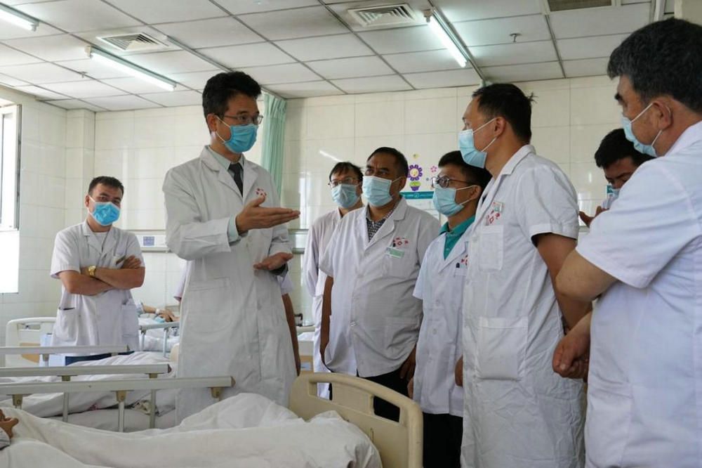 時任喀什地區第一人民醫院院長的林天歆(左二)在臨床科室開展醫療幫扶工作