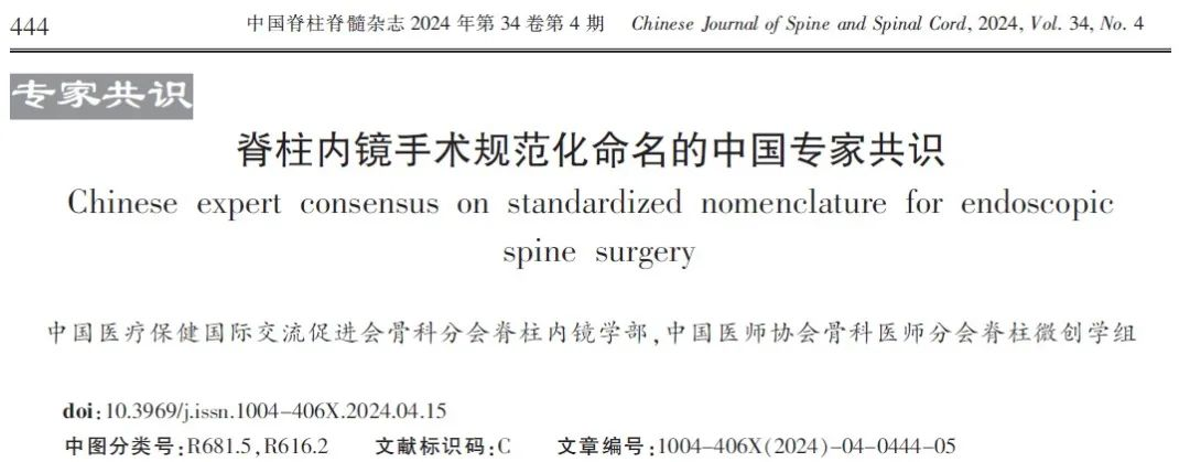 《脊柱內鏡手術規范化命名的中國專家共識》