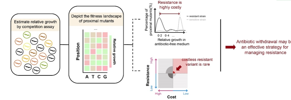 中大新聞網訊(通訊員張玉琦)抗生素的發現是人類歷史上最重要的生物醫學成就之一。然而,抗生素的大量使用促使抗微生物藥物耐藥性(Antimicrobial resistance,AMR)快速演化。每年死于AMR相關疾病的人數高達數百萬。開發新型抗生素是目前應對AMR的普遍策略,但新型抗生素研發周期長、難度大,因而亟需尋找新方法以遏制抗生素耐藥性。耐藥性的出現和傳播是自然選擇的過程,細菌面對逆境(如抗生素壓力)往往通過犧牲一部分適應性(Fitness)來獲得適應逆境的生存能力。一旦脫離逆境,這些適應性較低的菌株克隆容易被其他優勢群體所取代。與此同時,全球許多國家或地區試圖通過停用抗生素來遏制耐藥性的傳播。然而,禁用抗生素能否有效降低耐藥性的傳播存在很大爭議,如何提前評估禁抗策略的有效性是當前該領域亟需解決的關鍵問題。