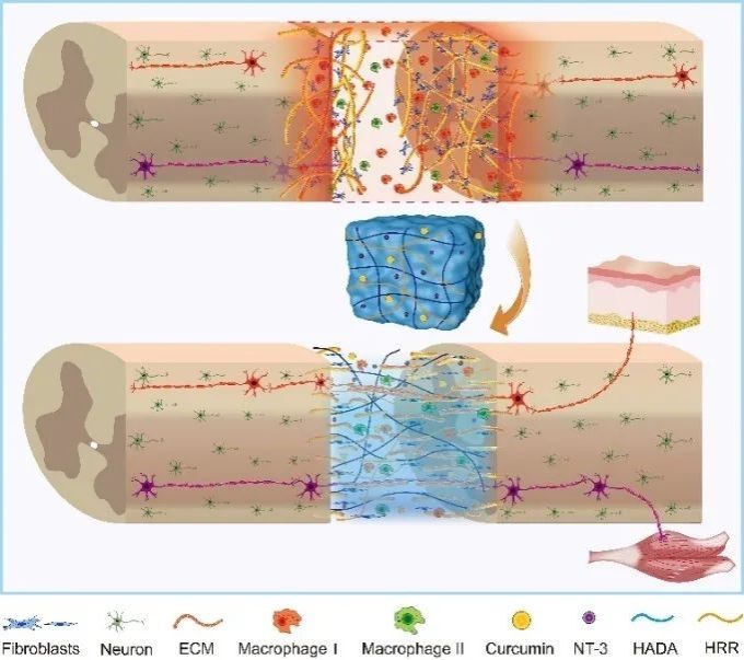 圖1:HADA/HRR+NT3/Cur水凝膠重塑細胞外基質重建上下行神經聯系