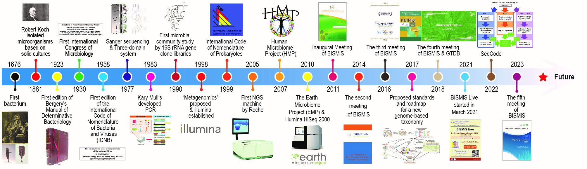 本文綜述了原核生物系統學的發展與歷史進展,以及BMSAB和BISMiS在這方面所做的貢獻,探討了微生物系統學取得的重大成就和進步,總結該領域的最新進展。原核生物系統學的起源可以追溯到17世紀,它經歷了從基于基本表型的分類到基于生理、生化等復雜特征的多相分類的轉變,并最終發展到目前的基于整體生理、生化與基因組的現代系統分類。在這過程中,伯杰氏國際微生物系統學學會(Bergey's International Society for Microbial Systematic,BISMiS)和伯杰氏細菌和古菌系統學手冊(Bergey's Manual of Systematics of Archaea and Bacteria,BMSAB)在指導和規范原核微生物系統學研究方面發揮了關鍵作用。此外,本文展望原核生物系統學存在的4個挑戰和機遇,旨在提供對微生物系統學的歷史、現狀和未來的見解,并為該領域的學者提供參考。本文還概述了應對這些挑戰的的五點建議,期望通過加強原核系統學的持續發展,確保其在基因組學和生物信息學時代的創新性。