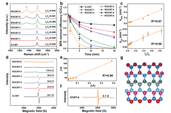 圖2:缺陷態碳納米管的表征與催化性能測試