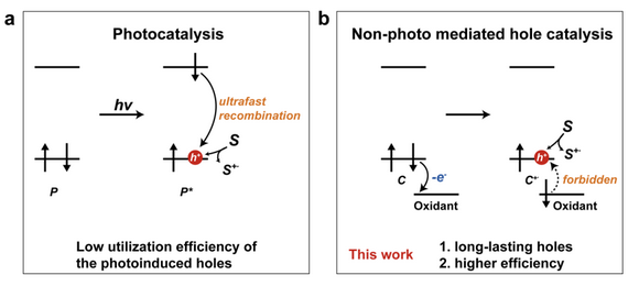 圖1:傳統光催化過程與非光介導空穴催化過程