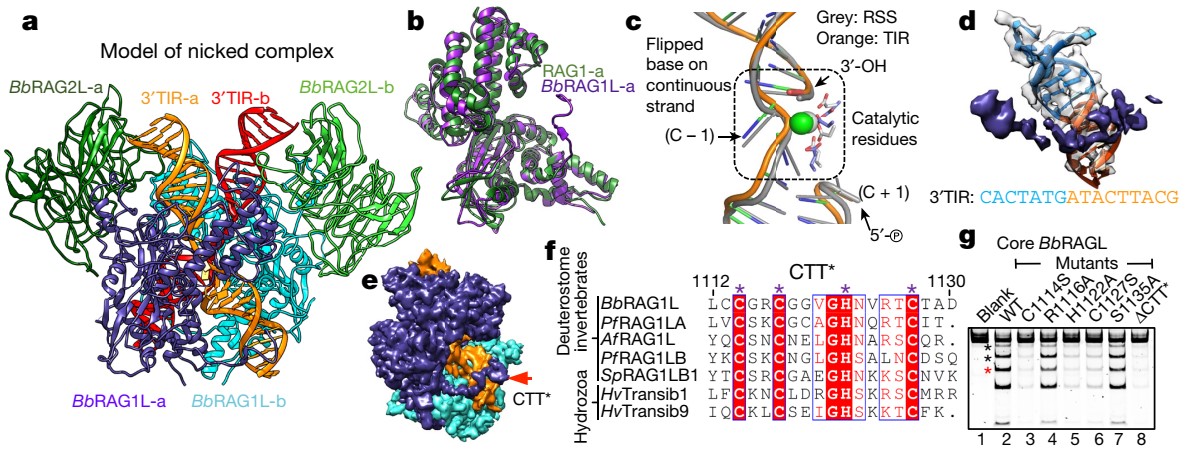 圖1. ProtoRAG介導的轉座與哺乳動物RAG介導的抗體重排過程高度相似
