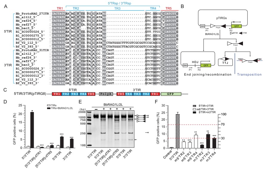 圖4.ProtoRAG的高效重組活性依賴其對非對稱TIR序列的識別