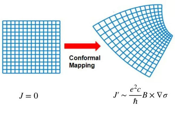 共形變換產生反常電流的示意圖