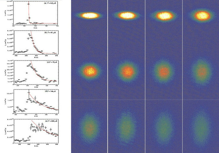 物理學家們寄希望于實驗物理數據能夠為量子三體物理研究帶來突破,超冷原子實驗為量子三體研究的突破提供了實驗契機。羅樂教授長期在國際一流的冷原子物理實驗室工作,他所屬研究團隊擁有豐富的儀器設備制造經驗。實驗團隊利用自己實驗室研制的全新一代全光冷卻費米原子系統把鋰6費米原子冷卻到超流轉變溫度之下,低于絕對溫度之上百萬分之一度。在這樣的實驗中,兩個鋰6原子間的兩體相互作用可以得到精確控制,通過Feshbach共振,原子三體重組產生了分子形成和原子數損失,從而利用冷原子提供的及其精密測量手段探索量子三體中的在范德華普遍性。在發表的論文中,通過實驗測量和從理論上分析三原子重組在543.3 高斯附近的6Li-6Li的窄波磁Feshbach共振,表明在有限的溫度下,三體重組主要由間接過程支配并在閾值以上的kBT內存在窄共振峰。實驗數據強有力的顯示連續的成對過程遵循一個普適行為并由范德華力決定。論文給出了三體重組速率常數描述的解析公式和對溫度的依賴性,其中三體重組通過連續的成對相互作用進行。基礎物理圖像不僅適用于窄s波共振,還適用于非零分波的共振,不僅適用于超低溫,而且適用于更高的溫度。