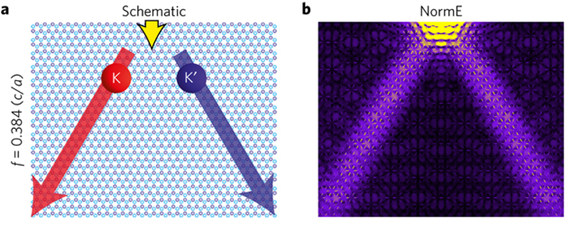 光學(xué)能谷霍爾效應(yīng)。(a)能谷-贗自旋鎖定;(b)電場分布。