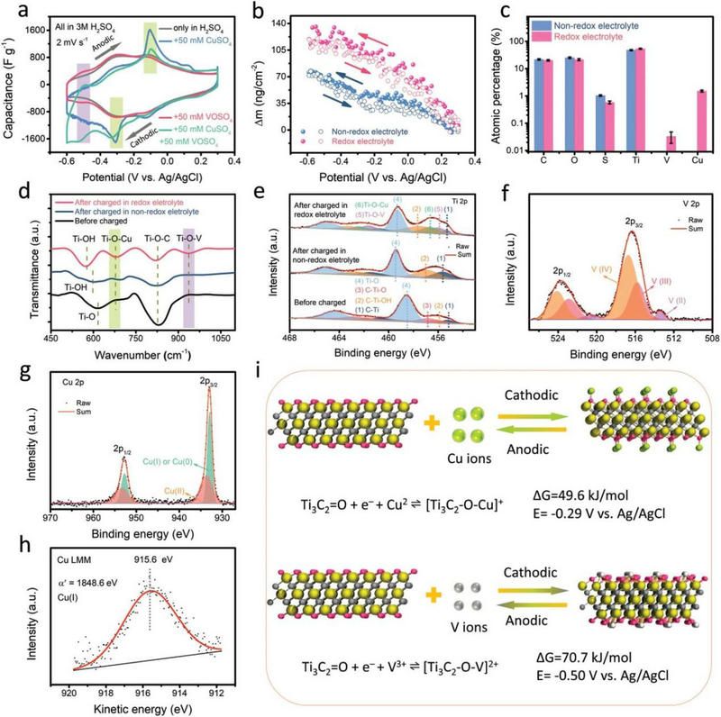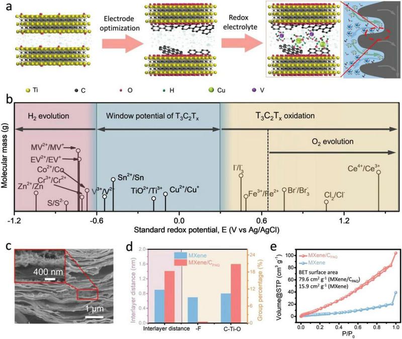 圖2. 氧化還原添加劑和Ti3C2Tx MXene相互作用機理