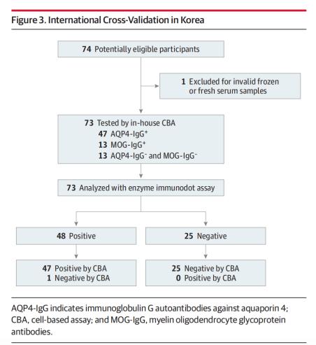 中大新聞網訊(通訊員孫曉渤)9月5日,國際神經病學頂級期刊JAMA Neurology 在線發表了國際創新技術-免疫斑點法(IDoT)檢測水通道蛋白(AQP4)抗體的研究論著。這是目前國內神經免疫抗體檢測研究成果首次發表于該期刊,在國際神經免疫病研究領域發出了中國聲音,也體現了國際同行對中國開展國際臨床合作研究的認可。邱偉(中山大學附屬第三醫院,末位通訊)、Ho Jin Kim(韓國國立癌癥中心)為共同通訊作者;付瑩(福建醫科大學附屬第一醫院)、畢錦(福建醫科大學附屬第一醫院)、閆亞平(陜西師范大學)、孫曉渤(中山大學附屬第三醫院)為共同第一作者。該研究得到了天津醫大總醫院施福東、廣醫二院龍友明、中山大學附屬第三醫院李銳等專家的指導。