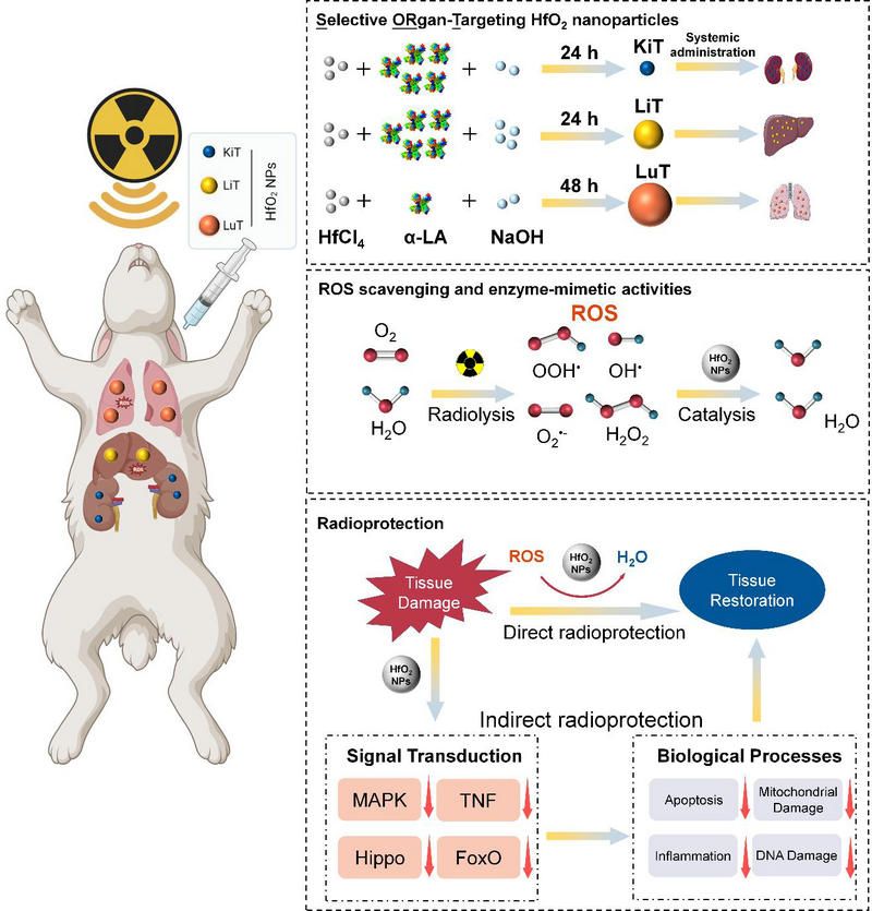 SORT HfO2 NPs對小鼠和兔子的器官靶向性放射防護及其作用機制