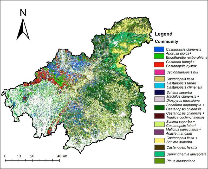 圖1 2000年廣州市北部地區(qū)森林群落分布回溯圖