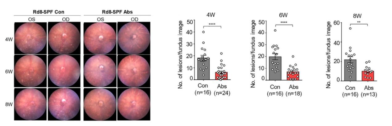Rd8小鼠視網膜上的退行性改變依賴于微生物侵入