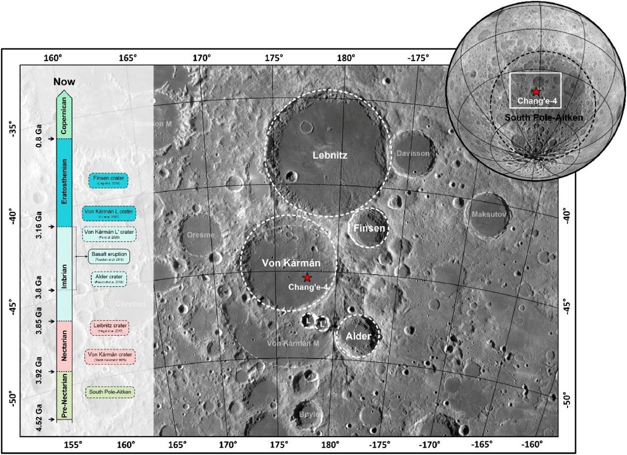 圖1 嫦娥四號著陸區及該區域主要地質事件的時間序列。