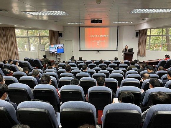 譚毅副教授作了題為《十九屆六中全會精神解讀》的輔導報告,他用精簡的形式將十九屆六中全會精神概括為“一個問題”、“兩個確立”、“三個需要”、“四個階段”、“五個意義”、“十個堅持”,對黨的十九屆六中全會的核心內容與主要成果進行了深入解讀。十九屆六中全會總結了黨的百年奮斗重大成就和歷史經驗,是在建黨百年歷史條件下開啟全面建設社會主義現代化國家新征程、在新時代堅持和發展中國特色社會主義的需要。譚毅副教授的報告深入淺出,系統詳實,具有現實針對性,對于總務部黨員干部深入學習十九屆六中全會精神具有重要的指導意義。