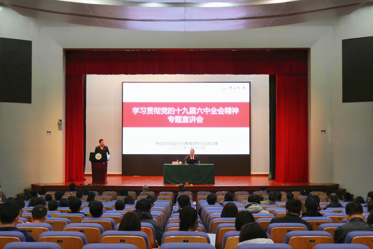 中山大學(xué)學(xué)習(xí)貫徹黨的十九屆六中全會(huì)精神專題宣講會(huì)現(xiàn)場(chǎng)(來源:黨委宣傳部 李澤暉攝)