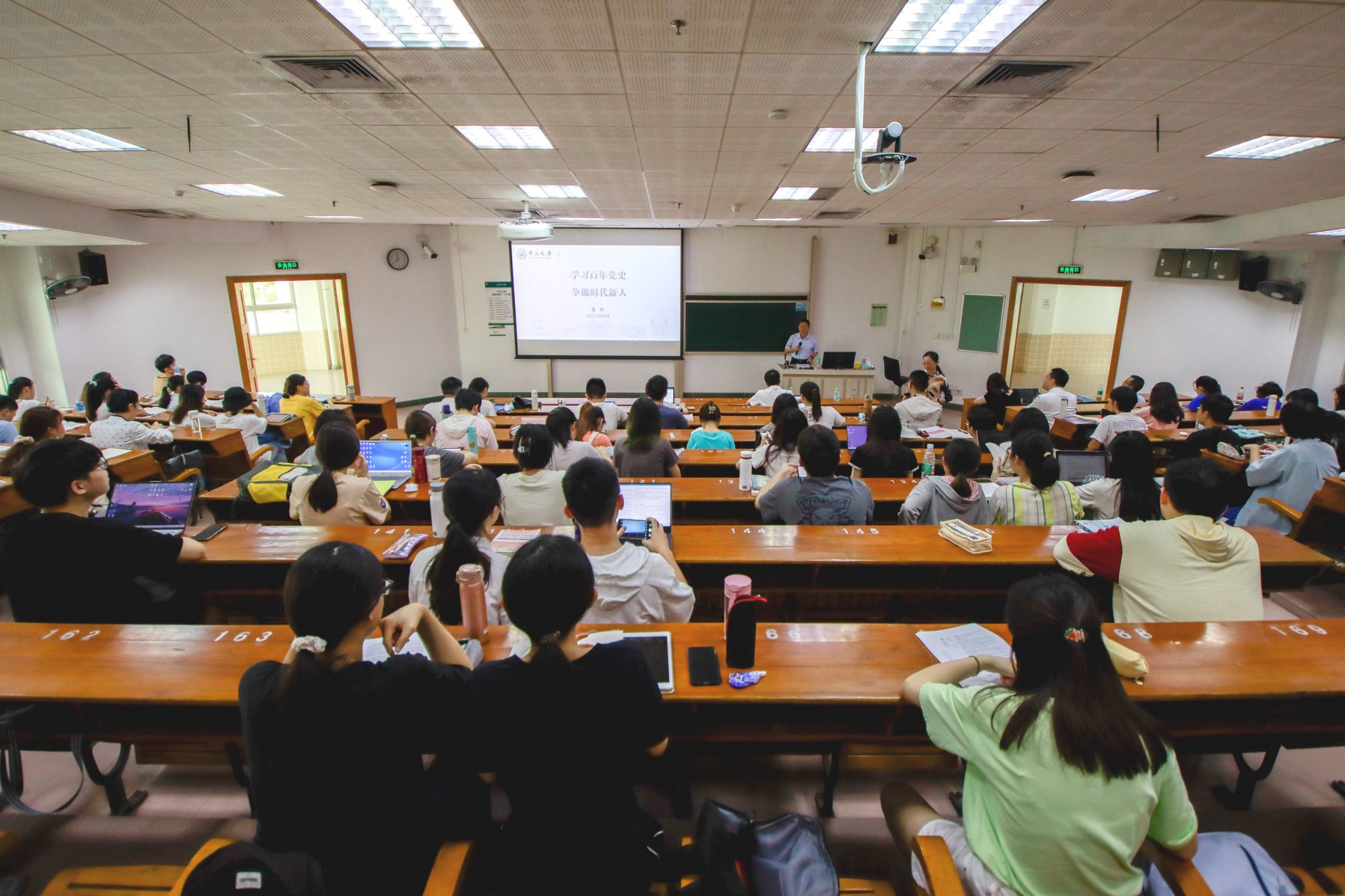 課上,高松校長帶領同學們系統回顧了黨的百年輝煌歷史和中大的百年校史,并寄語中大學子要不負偉大時代,勇擔歷史使命,心懷“國之大者”,在中華民族偉大復興的“接力跑”中,跑出一個屬于新時代青年的更好成績!