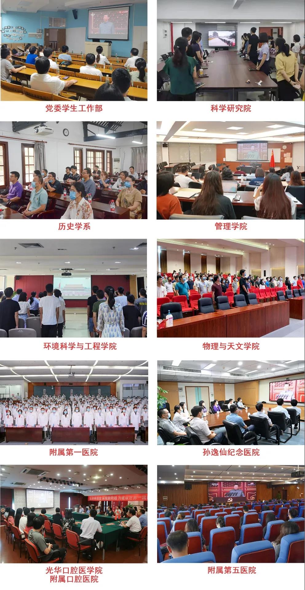 本次活動(dòng)分別在廣州校區(qū)北校園、東校園,珠海校區(qū)和深圳校區(qū)設(shè)置分會(huì)場(chǎng),各校區(qū)組織中層黨員領(lǐng)導(dǎo)干部及院系師生黨員代表集中收看慶祝大會(huì)。