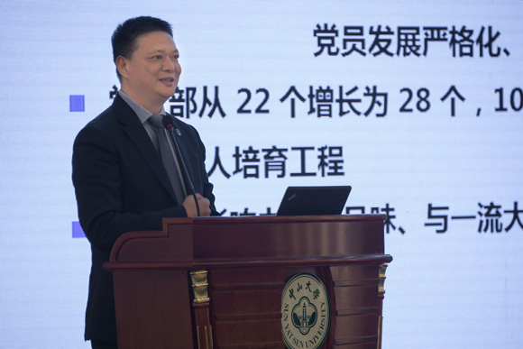 校長助理、管理學院院長王帆表示,過去五年,學院以基層黨建促進學科發(fā)展,實現(xiàn)三個“優(yōu)勢轉(zhuǎn)化”,即將黨的政治優(yōu)勢轉(zhuǎn)化為學科優(yōu)勢、黨的組織優(yōu)勢轉(zhuǎn)化為管理優(yōu)勢、黨的思政優(yōu)勢轉(zhuǎn)化為文化優(yōu)勢。他強調(diào),未來五年,學院將堅持黨建引領,圍繞“德才兼?zhèn)洹㈩I袖氣質(zhì)、家國情懷”的人才培養(yǎng)目標,培養(yǎng)德智體美勞全面發(fā)展的卓越人才;圍繞“三個面向”,布局科學研究的“三大建設”;通過筑高原、攀高峰,全面提升科學研究的中大特色與一流優(yōu)勢。