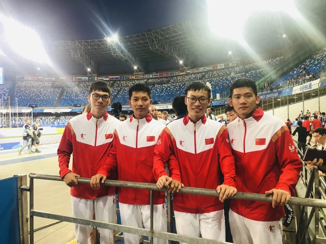 ▲我校短跑名將禤達(dá)軍同學(xué)(右一)摘得世界大學(xué)生運(yùn)動(dòng)會(huì)男子4×100米接力賽銀牌