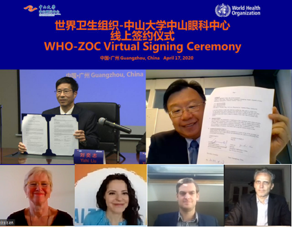 2020年世界衛生組織—中山大學中山眼科中心線上簽約儀式(來源:中山眼科中心)