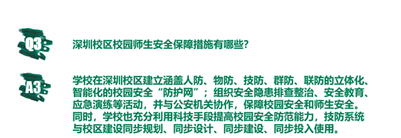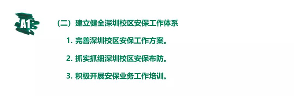 學(xué)校將持續(xù)深化深圳校區(qū)安保體系建設(shè),不斷提高深圳校區(qū)的安全指數(shù),大力推進(jìn)保衛(wèi)工作,有效落實(shí)安保措施,守護(hù)師生和學(xué)校的平安!