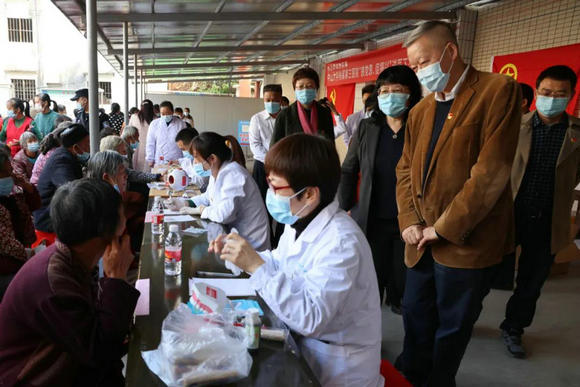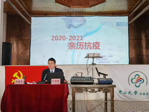 調(diào)研期間,附屬第三醫(yī)院吳京洪書(shū)記帶隊(duì),組織10余名臨床專(zhuān)家在連州市豐陽(yáng)鎮(zhèn)開(kāi)展義診活動(dòng),覆蓋了多種鎮(zhèn)村急需的科室類(lèi)型,共接診當(dāng)?shù)匕儆辔淮迕?,免費(fèi)發(fā)放藥物數(shù)萬(wàn)元。“援鄂英雄”卞華偉醫(yī)生和朱海秀護(hù)士在豐陽(yáng)人民禮堂面向鎮(zhèn)村干部主講“抗疫精神”專(zhuān)題黨課。