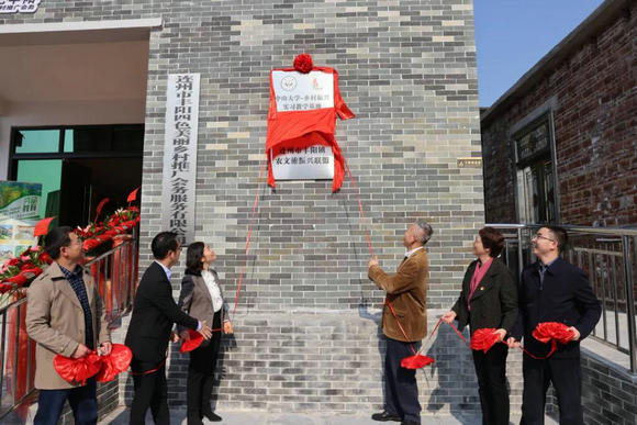校領(lǐng)導(dǎo)與當(dāng)?shù)仡I(lǐng)導(dǎo)共同揭牌(來(lái)源:黨委宣傳部 吳立堅(jiān)攝)