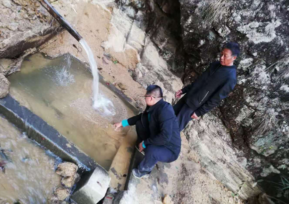 李銳上山查看村民飲用水源情況(來源:校工會)
