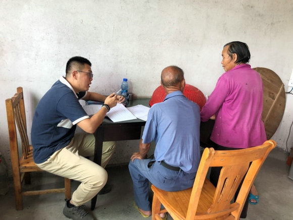 劉嘉(左一)走訪調(diào)研貧困戶(來(lái)源:校工會(huì))