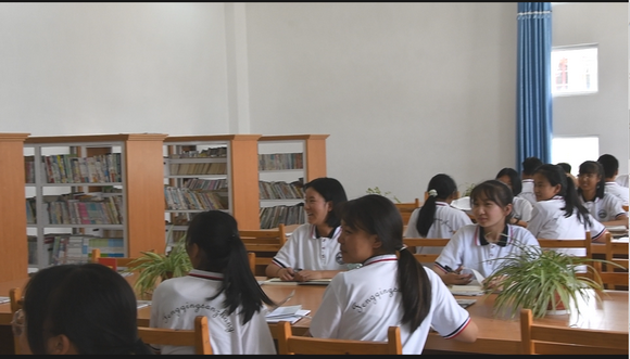 鳳慶三中學生在閱覽室內閱讀(來源:校工會 莫曉瑩 攝)