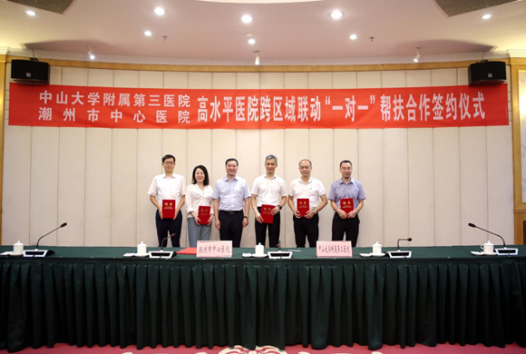 中大新聞網訊(通訊員滕奔琦、孫珂)9月7日,中山大學附屬第三醫院與潮州市中心醫院正式簽署廣東省高水平醫院跨區域聯動“一對一”幫扶項目協議,以推動潮州市中心醫院胸痛中心、卒中中心、創傷中心、危重孕產婦救治中心、危重兒童和新生兒救治中心“五大中心”建設和慢性病專科建設。當天,附屬第三醫院產科主任侯紅瑛作為專科首席專家、滕奔琦副主任醫師作為常駐專家入駐潮州市中心醫院產科。她們深入科室調研,將從臨床、管理、教學、科研、實驗室建設等方面,對潮州中心醫院產科全面開展幫扶工作。這也是產科黨支部深化黨史學習教育,扎實為群眾辦實事的有力舉措之一。