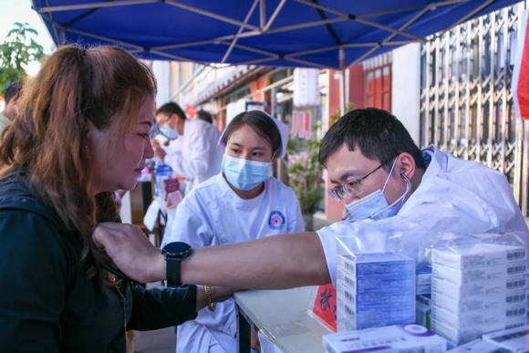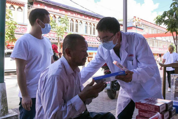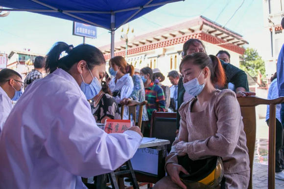 李玉希醫生為東阿丹增檢查(來源:黨委宣傳部)