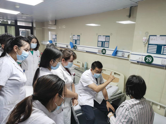 兼任喀地一院教學管理科主任的謝旭晶還是住培師資的中堅力量。她借助援疆專家及后方教學力量,不斷強化師資培訓力度,充分發揮“橋梁”作用,搭建起了廣東后方各大醫院與喀地一院交流合作的教學平臺。2020年10月18日,在謝旭晶的積極推動下,喀地一院迎來廣東省醫師協會、中山醫學院、附屬第三醫院的“組團式”教學團隊,開展為期兩周的個性化、立體化、多維度的系列住培教學活動,進一步提升了喀地一院教學管理水平。