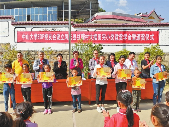 中山大學(xué)EDP校友會(huì)設(shè)立鳳慶縣紅塘村大擺田完小獎(jiǎng)教獎(jiǎng)學(xué)金暨頒獎(jiǎng)儀式(來源:校工會(huì))