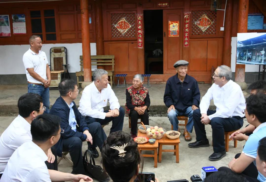 陳春聲書記、羅俊校長(zhǎng)一行在鳳山鎮(zhèn)紅塘村與楊光順老人及老伴親切交談(來源:黨委宣傳部)