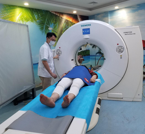 孔慶聰為患者進行胸部CT檢查(圖片來源:西藏民族大學受援辦)