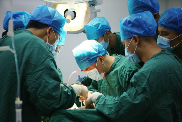中山大學(xué)附屬第七醫(yī)院何裕隆院長在鳳慶縣人民醫(yī)院示范胃癌D2根治術(shù) 攝影:劉暢