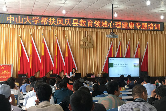 新聞網訊(通訊員 梁一川)6月2日上午,中山大學幫扶鳳慶縣教育領域心理健康專題培訓在云南省臨滄市鳳慶縣第一中學開講,我校心理學系李樺教授就“青年成長與青年教育——心理危機預防與危機干預”主題作專題培訓,鳳慶縣200多名教師和心理老師參加培訓。