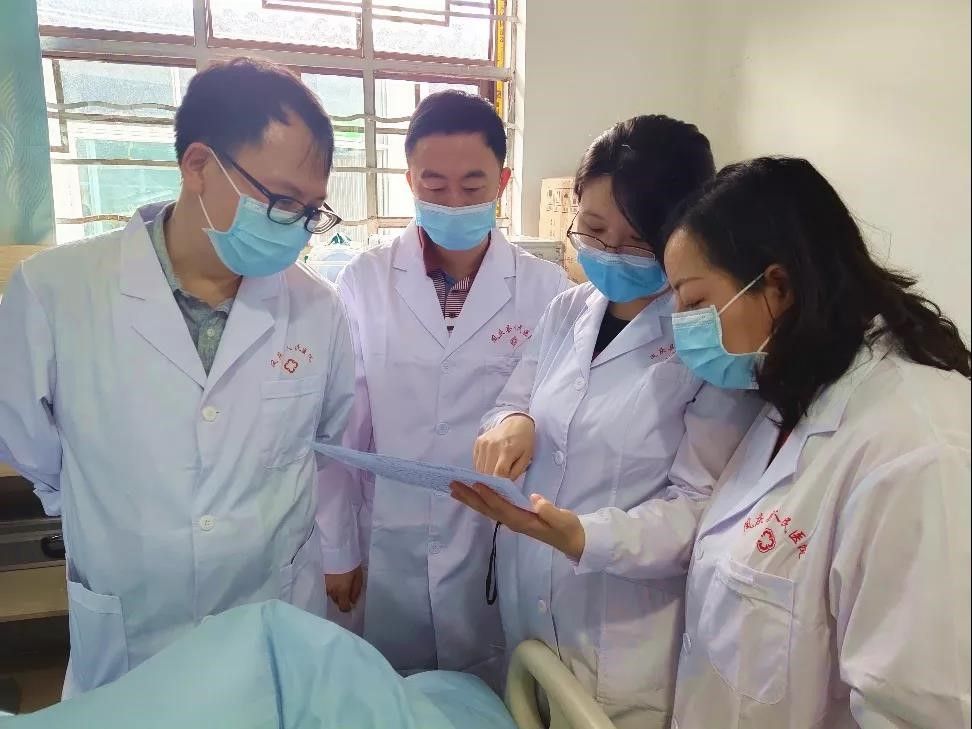 中山大學黨委副書記國亞萍慰問鳳慶縣人民醫院醫務工作者和下沉醫生(右二為邢蔚)(來源:腫瘤防治中心)