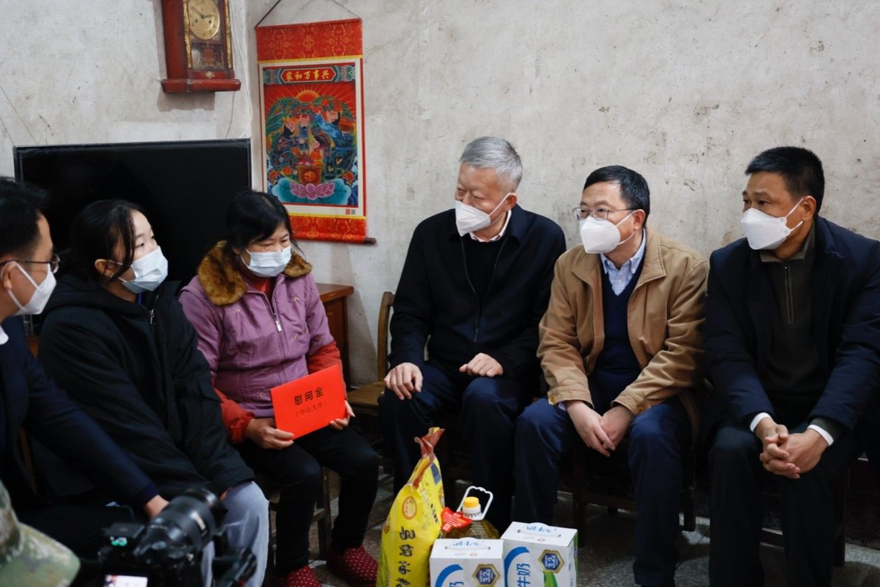 陳春聲書記、高松校長一行首先來到我校派駐駐村第一書記的豐陽鎮(zhèn)大富頭村脫貧戶吳永軍家里進行入戶慰問,了解困難群眾的日常生活、身體健康、收入來源、子女上學(xué)、幫扶政策落實等情況,叮囑幫扶工作干部要幫助群眾解決急難愁盼問題,努力讓群眾都感受到來自黨和政府的關(guān)懷與愛護,更好享受鄉(xiāng)村振興成果。