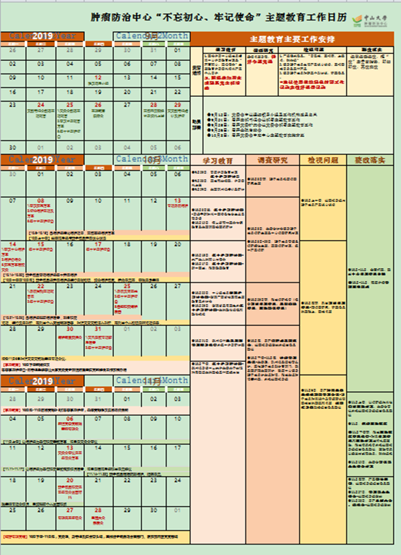 根據(jù)制定的主題教育實(shí)施方案,腫瘤防治中心制作主題教育“工作日歷”,工作任務(wù)與時(shí)間節(jié)點(diǎn)一目了然。