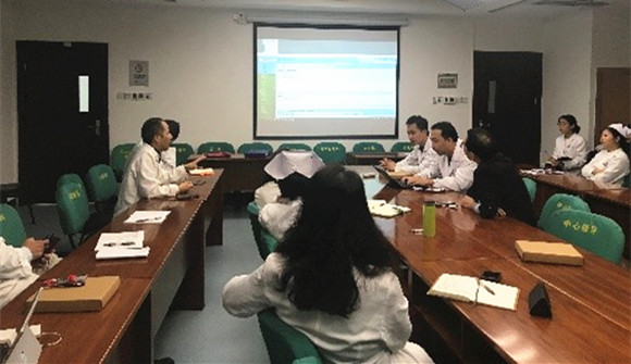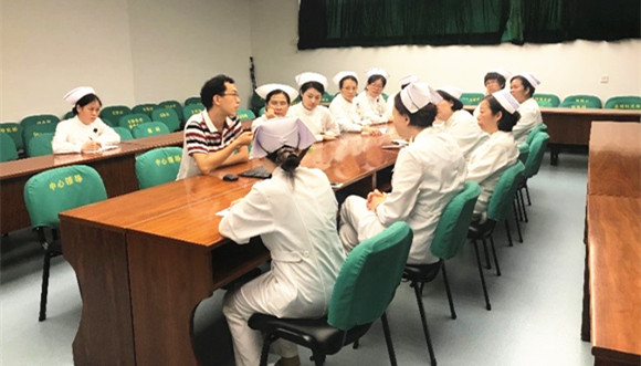 覃惠英主任、李超峰支部書記組織護士長學習新入院流程