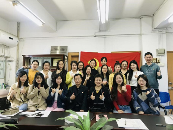 支部成員與校黨委組織部副處級專職組織員劉正生同志、學院黨委韓玲書記合影