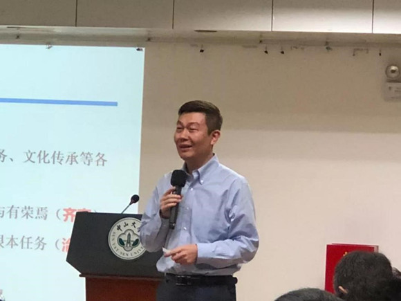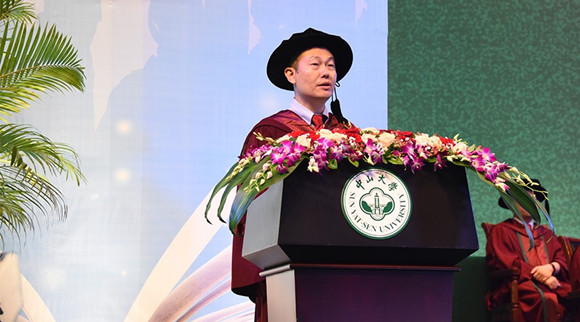 郝元濤同志在2019屆本科生畢業典禮上帶領同學們重溫院訓