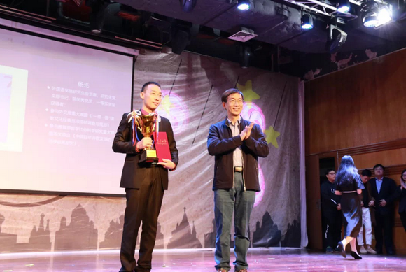 “2018年度外國語學院學生年度人物”李俊凱和博士生導師蒲志鴻教授合影