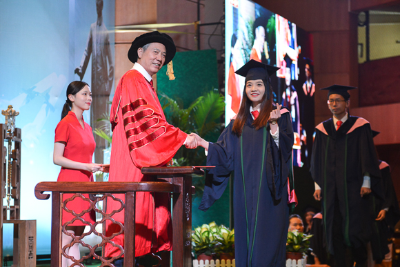 對于畢業(yè)生而言,莊嚴隆重的畢業(yè)典禮不僅僅帶給他們深刻的儀式感,也讓他們感受到了學校在細節(jié)里蘊含的脈脈溫情。嶺南學院的碩士畢業(yè)生林義偉表示,畢業(yè)典禮充分喚起了他對母校的感情:“學校給我們準備了這么隆重的儀式,我覺得特別興奮。權(quán)杖進入會場的時候,我全身的雞皮疙瘩都起來了。跟校長握手真的特別有意義,這讓我更加感受到了道別的意味。”林義偉是在工作十年之后重新返回校園學習的,這樣特別的經(jīng)歷也讓他對中大的學習更有感觸。他感謝中大提供了一個很好的發(fā)展平臺:“我們不僅有很多到國外學校、公司交流的機會,也能聆聽到很多海內(nèi)外名校教授的演講與講座。”